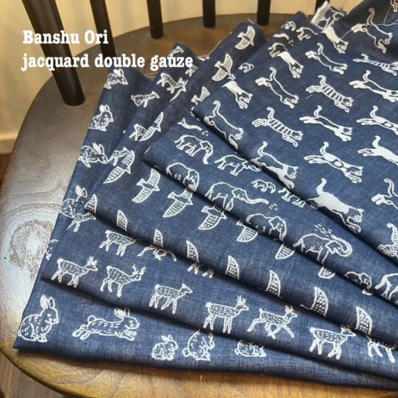播州織ジャガード ダブルガーゼ〈動物たちの森〉全5柄/綿100% 生地巾110cm ダブルガーゼ 綿100 日本製ベビー用品 ガーゼ素材
