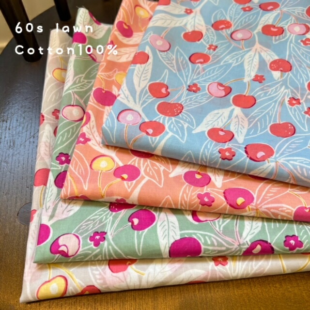ローン生地 60ローン コットン 100% さくらんぼ ローン 生地 布 光沢感 薄手 生地 平織 透け感 肌触り 上品 日本製 入学入園 新着ローン生地