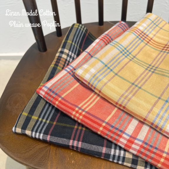リネン モダール チェック 柔らかい 吸水性 通気性 ナチュラル感 シャリ感 軽い 涼しい