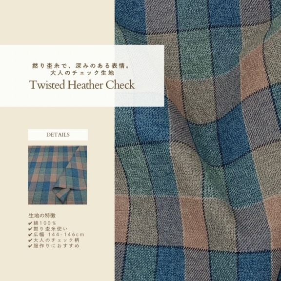 【店長おすすめ】 撚り杢/杢調/チェック/綿100/コットン/布/生地/ハンドメイド/洋服生地/バッグ生地/インテリア