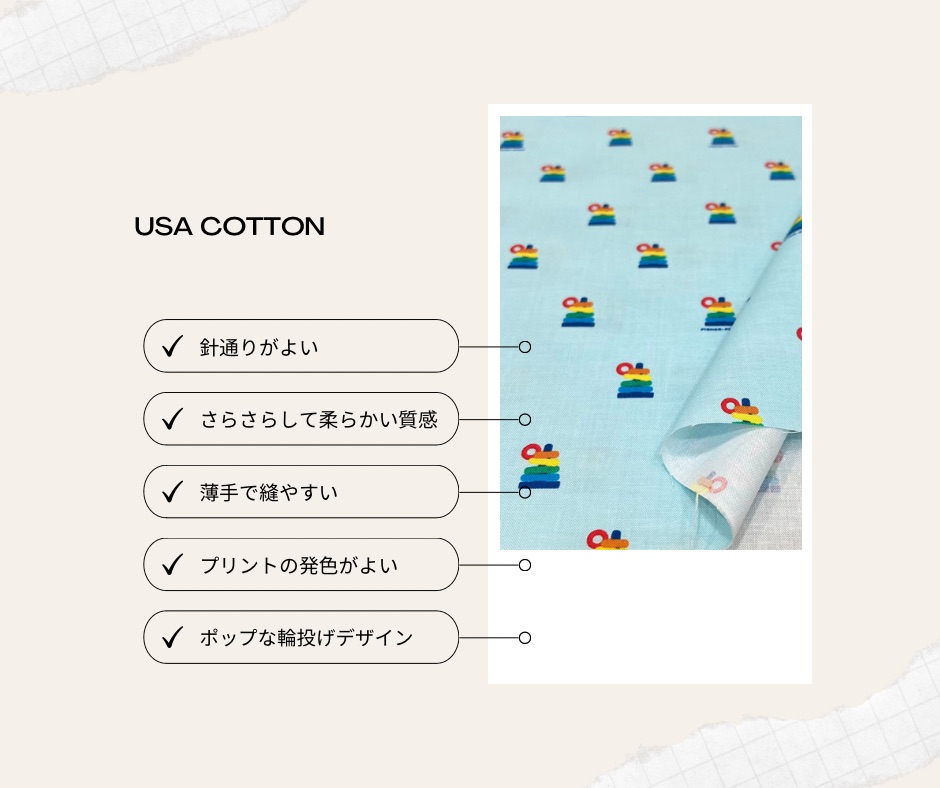 | 商品説明 | 綿は吸湿性・通気性に優れているのですが、それに加えて肌触りが良く耐久性に優れて丈夫な点がUSAコットンの特徴です。 |