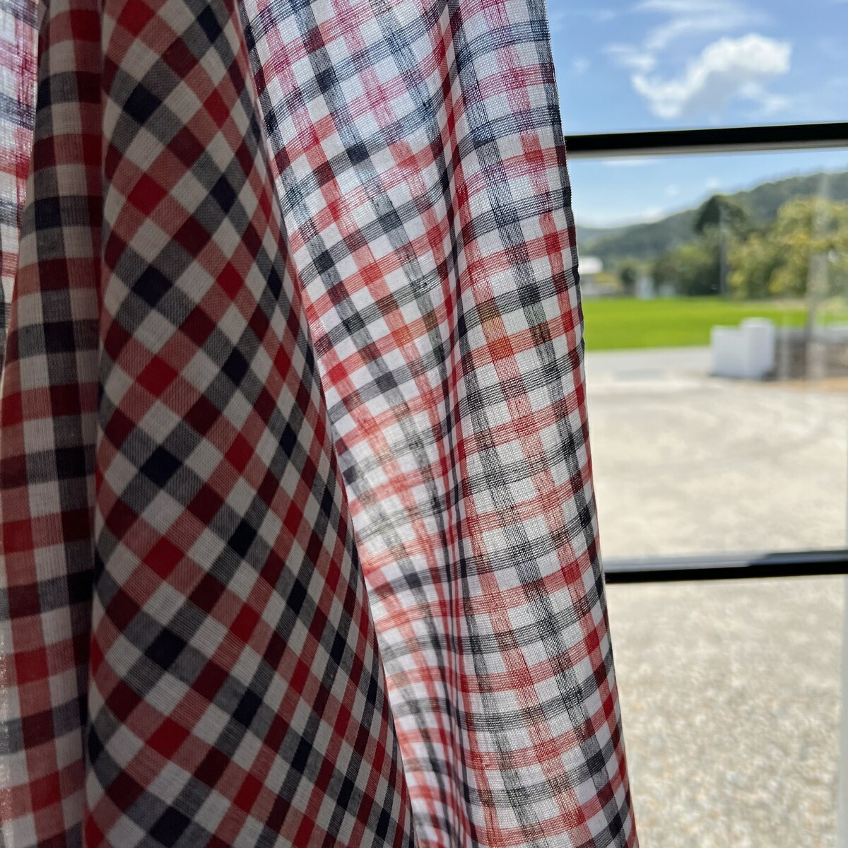 先染めの透け感のある薄手の生地です。