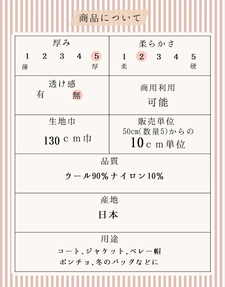 | 商用利用 | 可能 ※当店の生地は全て商用利用可能です。 |