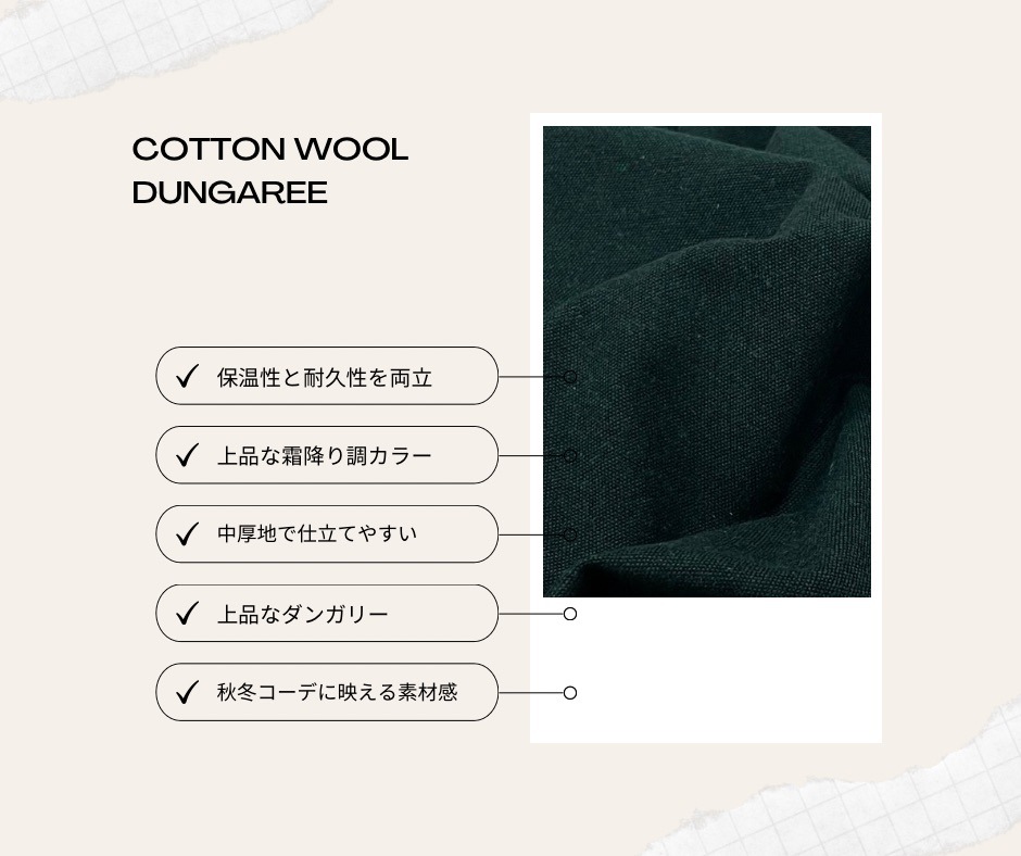 綿とウールを組み合わせた上質なダンガリー生地。