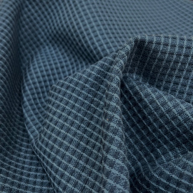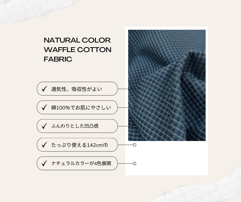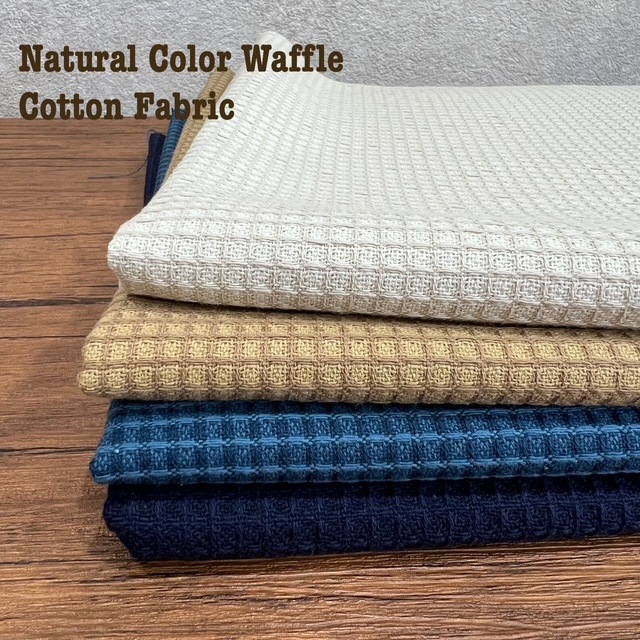 ざっくりとした凹凸感が心地よい、綿100%のワッフル生地。