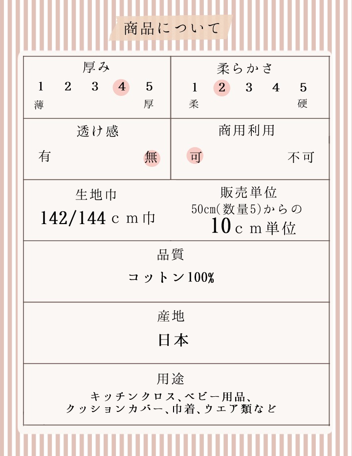 使いやすさとデザイン性を兼ね備えた、毎日使いたくなる定番生地です。