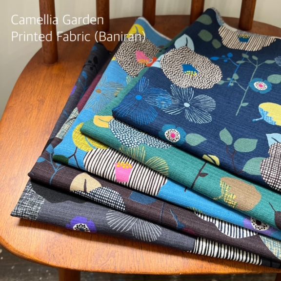 椿花ガーデン プリント生地(バニラン)椿柄 ヒナゲシ 和モダン 北欧風 プリント生地 日本製 綿100%