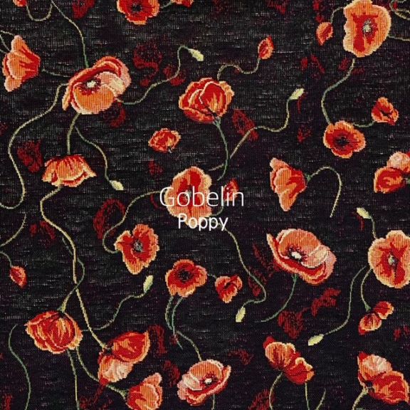 ヨーロッパ製 ゴブラン織 ポピーデザイン高級ジャカード生地 ジャカード EU製 ポピー 花柄 クラシック 高級感 厚手 インテリア バッグ クッション 椅子張り 黒地 ヨーロピアン