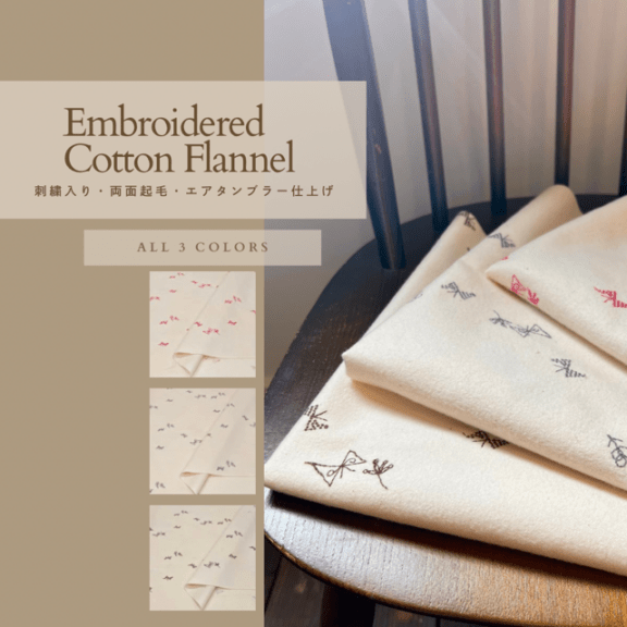 刺繍生地 綿100% 両面起毛 エアタンブラー仕上げ ちょうちょ刺繍 ナチュラル コットン生地