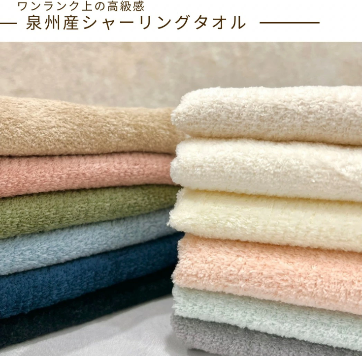 ※ 泉州産タオルとは、約130年の歴史と伝統を誇るタオル産地、大阪泉州地域で生産されるタオルのことで、吸水性にすぐれ、肌触りの良い、安心・安全な国産タオルです。