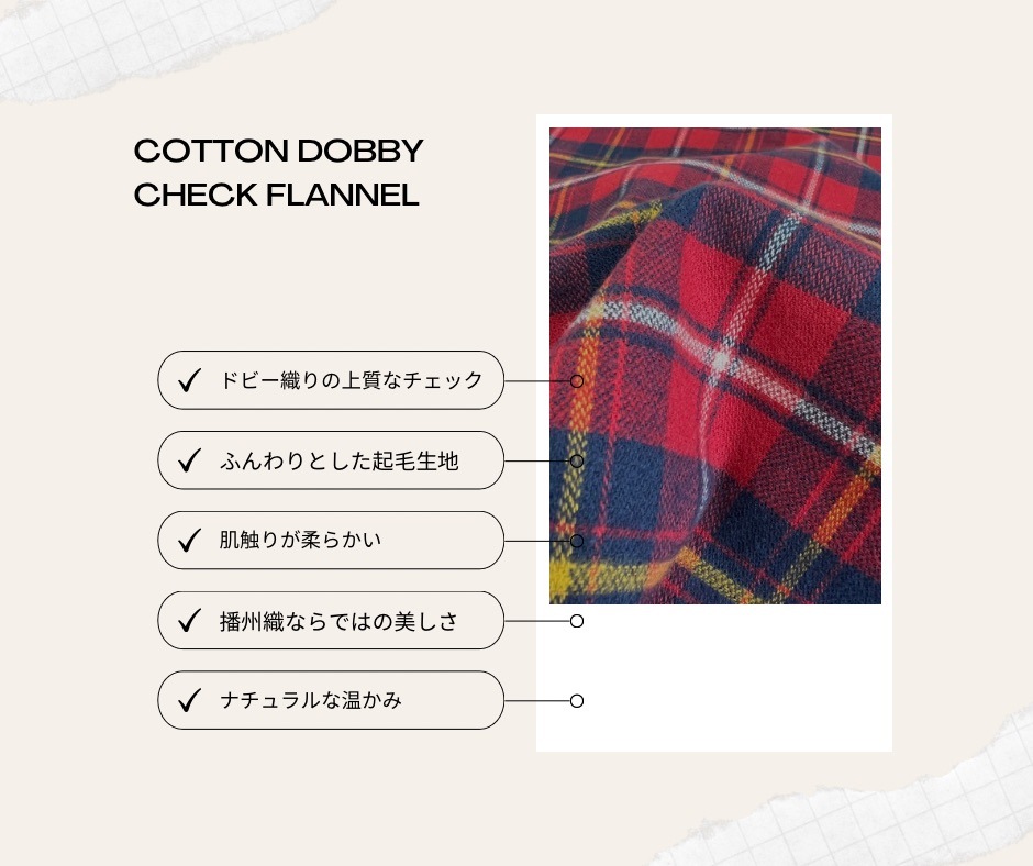播州織の産地で丁寧に織り上げられた「綿ネルドビーチェック」生地です。