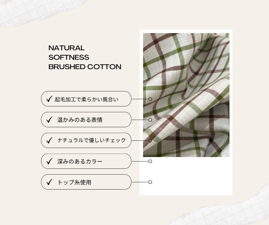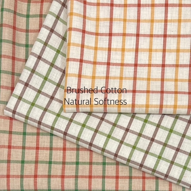 播州織の技術で丁寧に織り上げられた、微起毛のコットン100%チェック生地です。