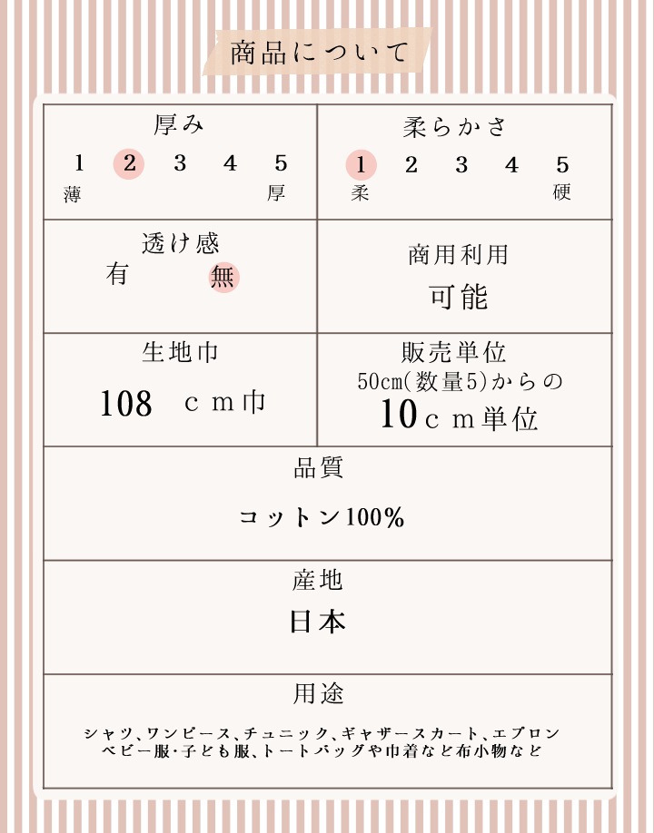生地幅108cmと扱いやすいサイズ感も魅力。