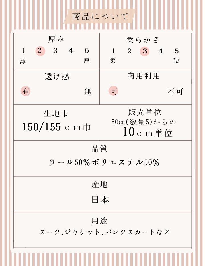 | 素材 | ウール50%ポリエステル50% |