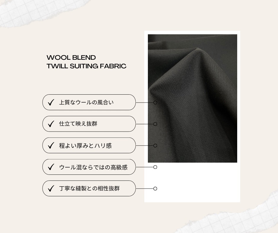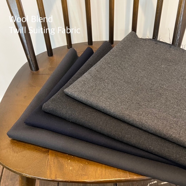 季節の洋服作りにぴったりな、上質な ウール混ツイルスーティング生地 です。